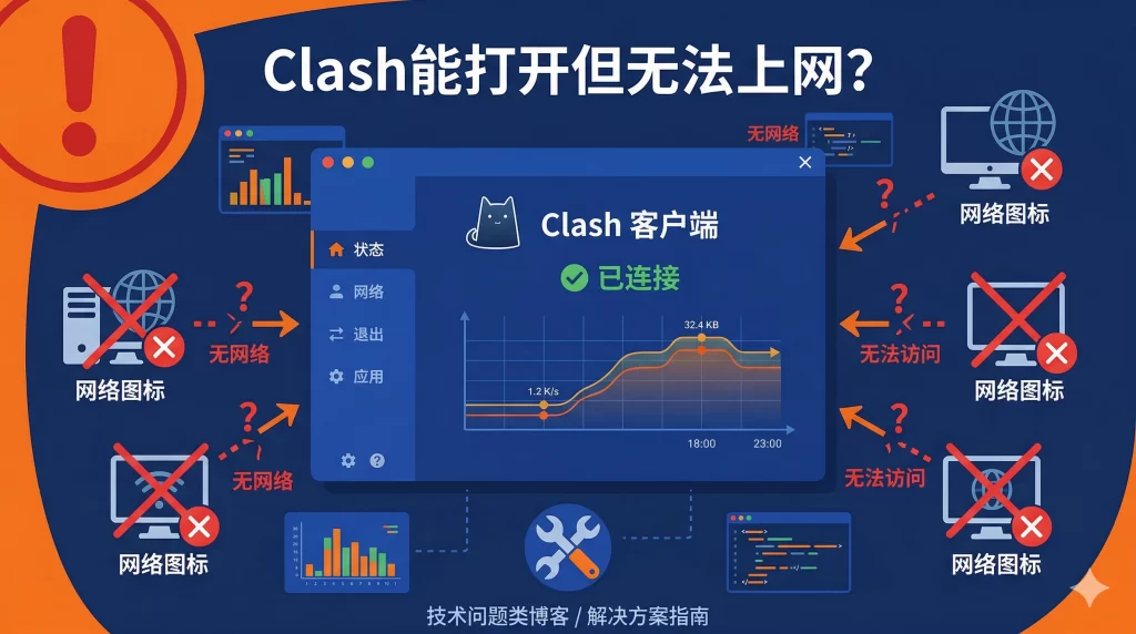 Clash 明明开着状态也显示连接成功,但某些海外网站还是打不开。这种情况相信不少人遇到过,今天说说该怎么排查。